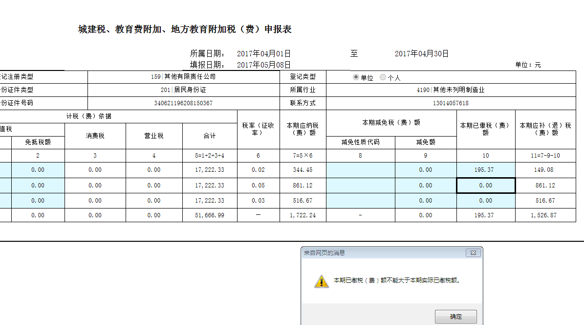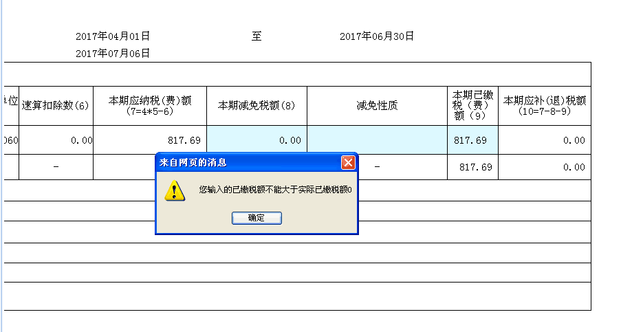 17.小规模企业申报增值税报表时提示以下错误,如图: