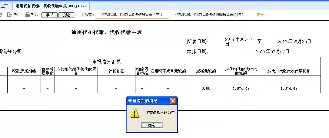 5、申报通用代扣代缴、代收代缴申报时,提示:主表信息不能为空,如何处理?