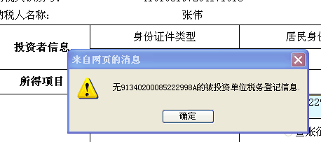 8、申报个人所得税提示:无***************的被投资单位税务登记信息,如何处理?