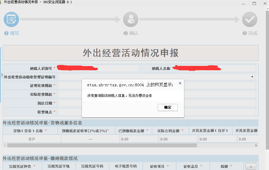 3、申报时提示:没有查询到当前纳税人信息,不能进行申报!【页面即将关闭】,如何处理?