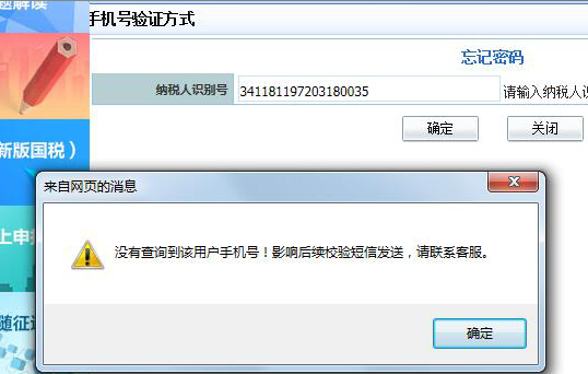 1、点击平台上方“忘记密码”菜单选择手机号码方式验证,输入税号后提示:没有查询到该用户手机号,影响后续校验短信发送,请联系客服,如何处理?