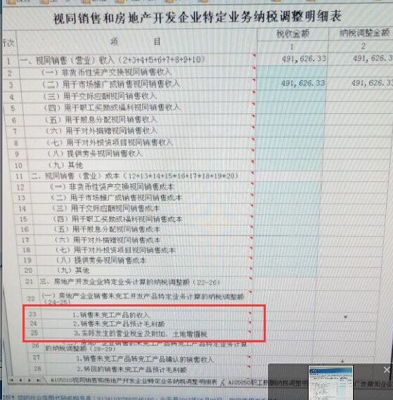 原因及解决方法:经查,只有在税局备案的行业为房地产开发经营,行业代码为7010的房地产企业,才可以填写21-29行。