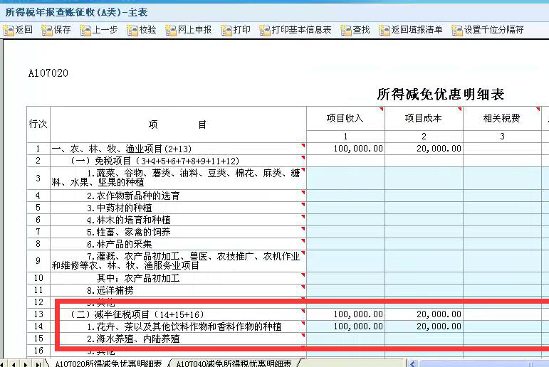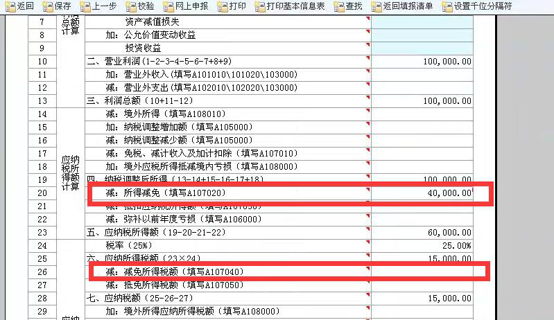 2、纳税人申报所得税年报查账征收,填写A107020表后,A107040表的小微减免带不出数字,如何处理?