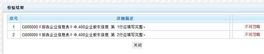 3、关联业务报表填写后校验提示“G000000《报告企业信息表》中,400企业股东信息第1行应填写完整”,如何处理?