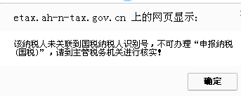 2、点击申报纳税(国税)菜单,提示:该纳税人未关联国税纳税人识别号,不可办理“申报纳税(国税)”,请到主管税务机关进行核实!如何处理?如图: