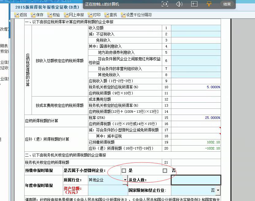 6、申报所得税年报核定征收时,无法勾选小微选项。