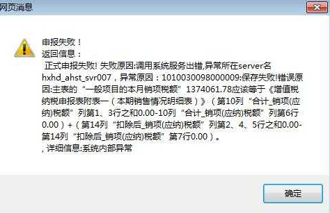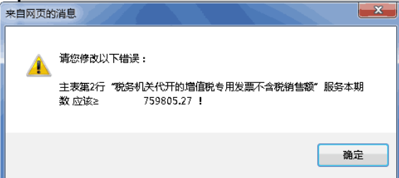 9.一般纳税人申报增值税报表时提示以下错误,如图: