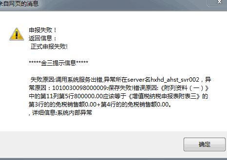 原因及解决方法:经查找,免税额第5列没有填写数据,手工填写后申报正常。