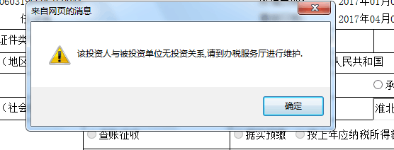 5、申报个人所得税A表时,提示“该投资人与被投资单位无投资关系,请到办税服务台进行维护”。