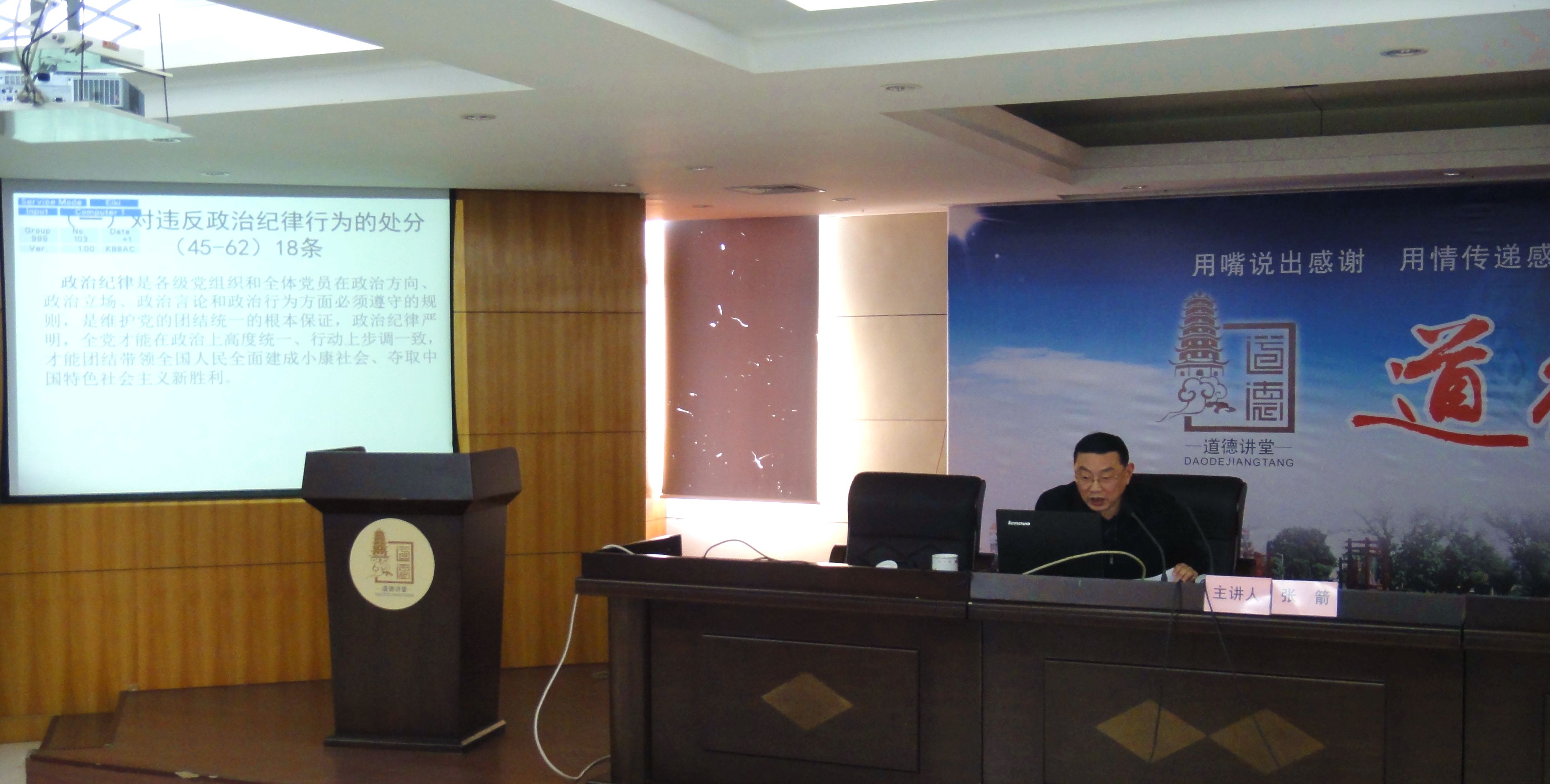 为深入学习《中国共产党廉洁自律准则》和《中国共产党纪律处分条例》两项法规,增强干部职工对两项法规的理解和认识,准确把握两项法规的内涵,2月15日,市局邀请市纪委宣传部长张箭对两项法规作专题讲座。